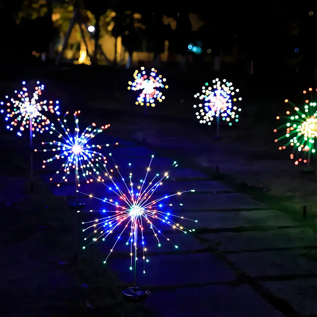 Las luces solares de decoración del jardín están diseñadas para jardines, patios, dormitorios, balcones, carpas, pasillos y decoraciones al aire libre. La luz de jardín con energía solar florece como fuegos artificiales, creando un ambiente romántico y haciendo la vida más colorida.
