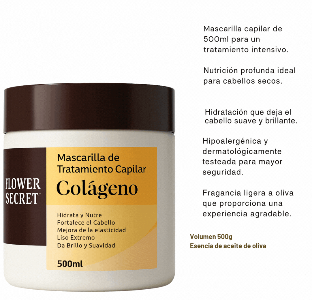 Cabello visiblemente más liso, brillante y sano desde la primera aplicación. Descubre la Mascarilla de Tratamiento Capilar con Colágeno de FLOWER SECRET: tu ritual de spa en casa.